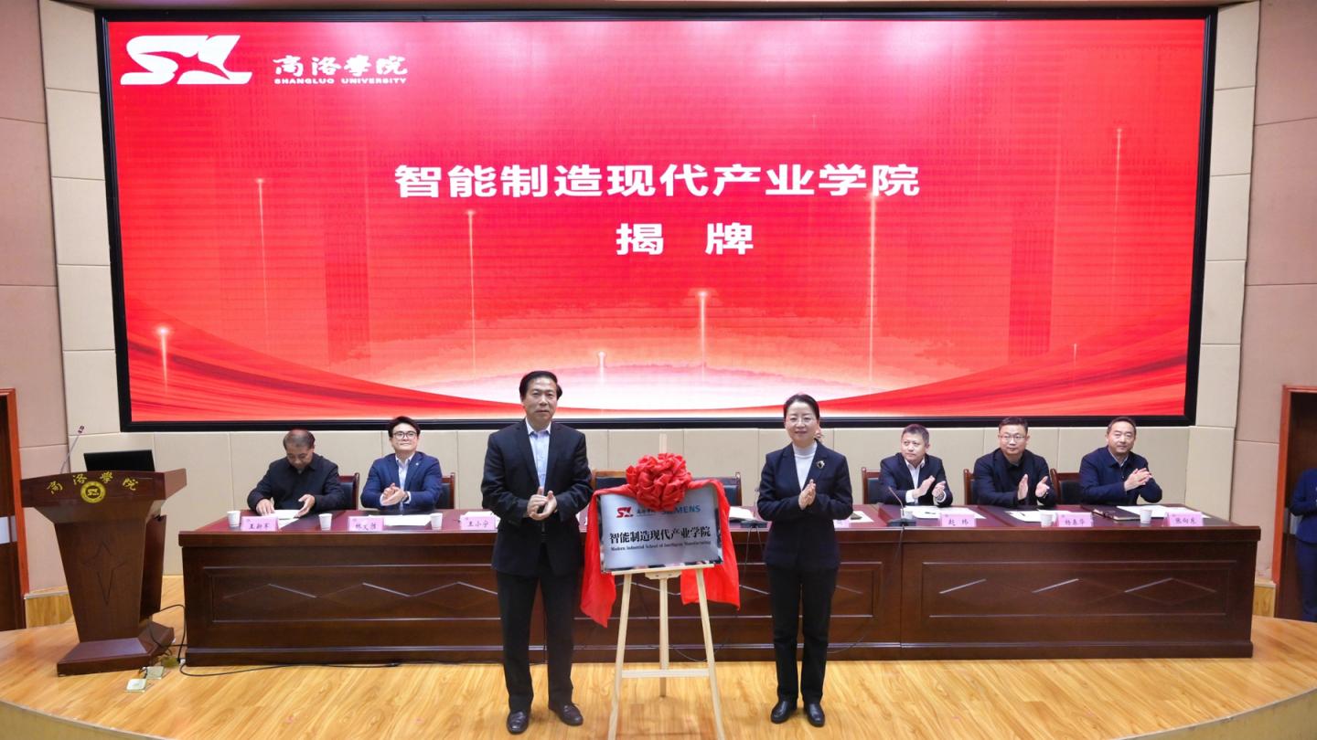 在全体与会人员的共同见证下,权雅宁与张雁共同为“商洛学院-西门子智能制造现代产业学院”揭牌,商洛市发改委、商洛学院、西门子工业软件(上海)有限公司、诺金宏业(上海)智能科技有限公司共同签署了《合作共建产教融合创新赋能平台战略框架协议》。